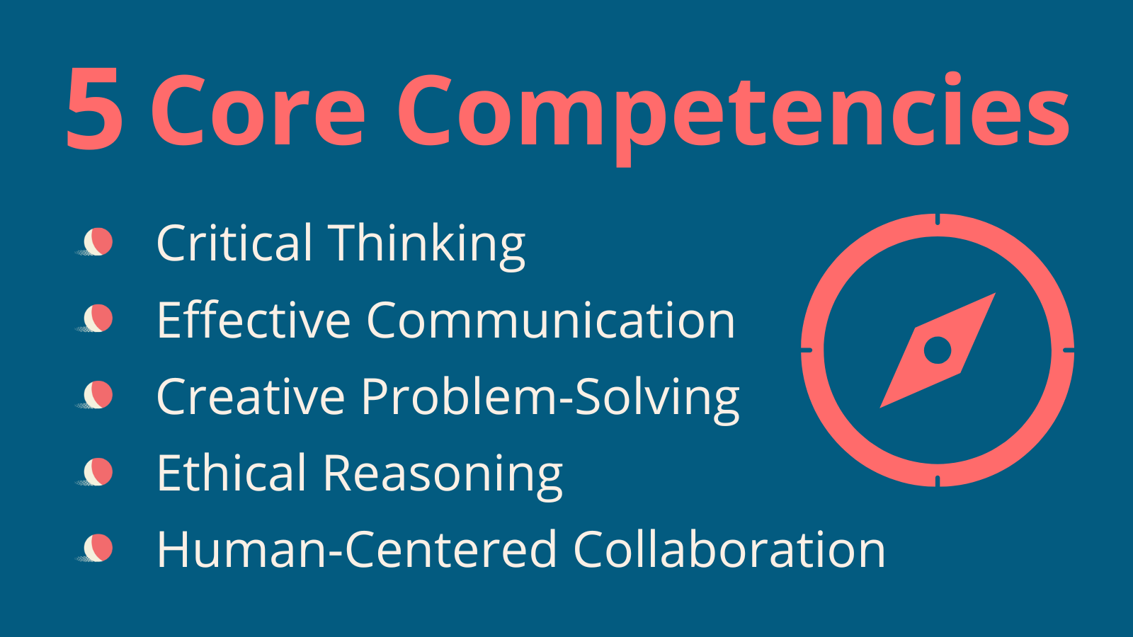 The breakthrough came once the group stopped debating whether AI was good or bad and started focusing on what students needed to thrive as learners and people. They identified five core competencies that transcended the AI debate: critical thinking, effective communication, creative problem-solving, ethical reasoning, and human-centered collaboration with technology. Preparing learners to develop these competencies and the durable skills, literacies, and mindsets necessary to achieve them became the North Star for the Innovation Lab's design.